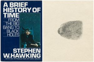All’asta anche la copia del già citato Una breve storia del tempo, edito nel 1988, recante l’identificazione personale dell’autore quando non poteva più scrivere: la sua impronta digitale; stimato dai 2600 alle 3900 dollari.