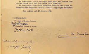 Scritto in 18 mesi il testo della Costituzione approdò in Aula il 4 marzo 1947, quando ebbe inizio il suo iter parlamentare.  La Costituzione nata sui principi della democrazia e dell’uguaglianza, venne approvata in Aula, senza eccessive modifiche, il 22 dicembre del 1947 con 453 voti favorevoli su un totale di 515 parlamentari. Il  successivo 27 dicembre venne firmata dal capo dello stato De Nicola.