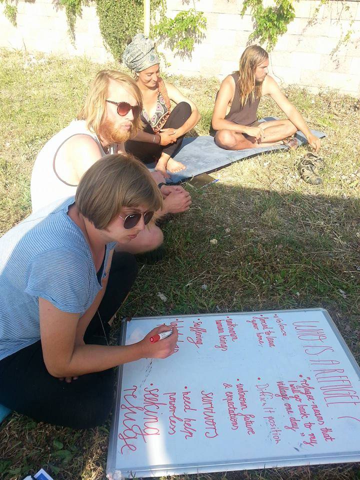 24 maggio – Platanitis (GR) Marcia di 16 chilometri nella campagna greca. Mentre camminano, elaborano quella che sarà l’argomento della consueta discussione serale: “Chi è un rifugiato?”.  Il gruppo di CMFA ha vissuto durante l’esperienza in corso con i rifugiati, molti di loro sono stati volontari nell’organizzazione dei loro eventi.  Un’autentica condivisione. Ma per quanto se ne sappia, si chiede il gruppo, si riesce veramente a capire cosa significhi essere “sfollati” dalla propria vita, senza averlo vissuto in prima persona? Probabilmente no, ma approfondire le esperienze altrui, paragonandole alle personali aiuta il gruppo ad assumere maggiore consapevolezza a supporto del loro obiettivo: diffondere la pace.