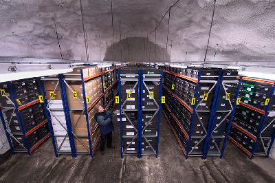 Immagine: Norvegia, isola di Spitsbergen (arcipelago artico delle isole Svaldard), interno del deposito Svalbard Global Seed Vault