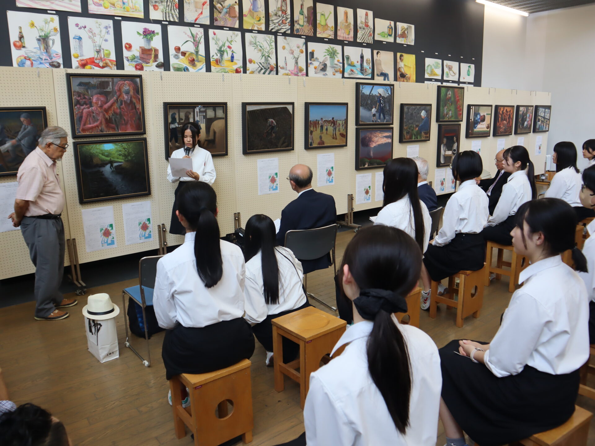 Per la mostra sopracitata, 16 studenti della scuola sono tornati negli ultimi 8 mesi a incontrare 7 hibakusha e ad ascoltare le loro vivide rievocazioni, nonostante gli 80 anni trascorsi e il fatto che allora erano dei bambini.